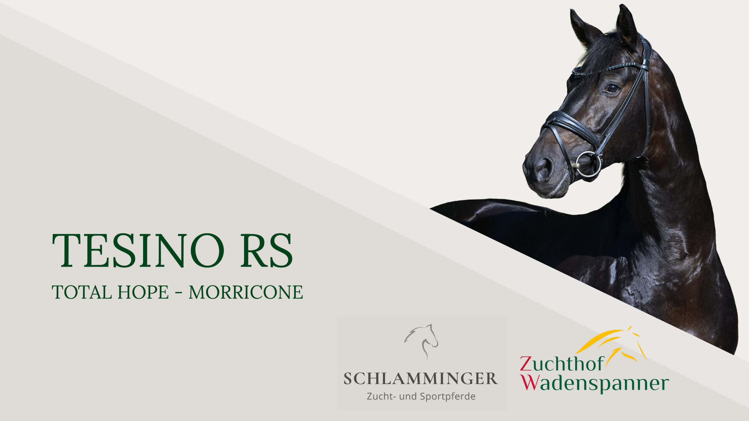 Beim 50-Tage-Test 2024 in Adelheidsdorf hat er höchste Erwartungen bestätigt bzw. übertroffen und landete in der Spitzengruppe. 2025 hat Tesino RS Reitpferdeprüfungen mehrfach gewonnen, war Oldenburger Vize-Landeschampion und platzierter Finalist im Bundeschampionat der vierjährigen Hengste. Das Pedigree ist eine Kollektion erlesenster Koryphäen der internationalen Viereckskunst. Schon der Vater Total Hope ist ein Kind berühmter Eltern: Sein Vater Totilas (Edward Gal/NED) und die Mutter Weihegold (Isabell Werth) haben ihn mit den höchsten Weihen des Dressur-Genres ausstaffiert, die er selbst als Sieger im Nürnberger Burgpokal und internationaler Grand Prix-Seriensieger unter Isabel Freese (NOR) meisterhaft umsetzt. Er ist ebenfalls erfolgreicher Teilnehmer an der EM in Riesenbeck und der WM in Herning (DEN) gewesen und qualifizierte sich für die Olympischen Spiele in Paris (FRA). Die Mutter My Diva PS lieferte zuvor bereits den gekörten Hengst Just in Time (v. Jameson RS2, PB Westf.). Der Muttervater Morricone I, Oldenburger Körsieger seines Jahrgangs 2014 in Vechta, ist aufgrund seiner Vererbung und seiner beeindruckenden Eigenleistung seit Jahren in aller Munde. Er war Finalist im Nürnberger Burgpokal 2019, Grand Prix-Sieger und lieferte bisher bereits über 20 gekörte Söhne. Die Großmutter Special Diva OLD, mit Heiko Klausing Bundeschampionesse der dreijährigen Stuten und Wallache 2014, ist Halbschwester zum gekörten Hengst Brilliant (v. Bretton Woods, Körsieger Redefin 2014), und brachte die gekörten Hengste Monterey (v. Morricone I, PB Oldbg., Vollbruder zur Mutter My Diva), Le Spécial (v. Lord Europe) und Total Diamond PS (v. Totilas). Special Divas Vater Sir Donnerhall I zählt nach etlichen Titeln im Laufe seiner Karriere (Prämienhengst, Hauptprämiensieger, HLP-Sieger, Bundeschampion, Vize-Weltmeister) heute zur Weltspitze der Dressurvererber. Diamond Hit in vierter Generation war 2002 sowohl Vize-Weltmeister als auch Vize-Bundeschampion der fünfjährigen Dressurpferde. Im Jahr zuvor war er Vize-Landeschampion und Vize-Bundeschampion der vierjährigen Hengste. Später war Diamond Hit auf internationalem Level erfolgreich. Mit Emma Hindle (GBR) platzierte er sich im Grand Prix von Aachen, Wiesbaden und Stadl Paura (AUT) und ist auch als Vater von exzellenten Dressurpferden und bedeutenden Hengsten hoch bewährt. Bekannte Repräsentanten westfälischer Leistungszucht wie Landro L, Diamantino, Weinberg, Remus II und Frühling bilden den Pedigree-Background. Tesino RS repräsentiert den ursprünglich hannoverschen, aber in Westfalen omnipräsenten Stutenstamm 600/Helferin von Lanhausen. Daraus resultieren 20 gekörte Hengste, u. a. Heroen westfälischer Zucht wie Remus I u. Remus II (Ldb. Warendorf), Romulus I (Ldb. Warendorf, Körsieger), Romulus II (PB Westf.), ferner Abendgold (PB Westf.), Feuerstein (Ldb. Moritzburg), Flamenco (PB Westf., Bay.), Pentagon (Ldb. Dillenburg, PB Hess.), und das international erfolgreiche Springpferd Fharian/Hans-Joachim Langemeyer.